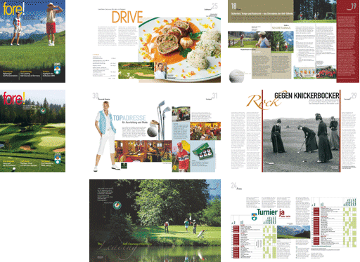 visuelle Umsetzung des 56seitigen Clubmagazins „fore!“